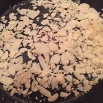 Płatki migdałowe prażymy na patelni na lekko złoty kolor.
